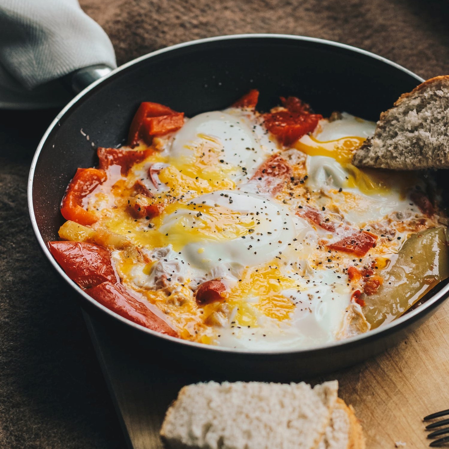 Тази рецепта е вариант на класическите пържени яйца, всъщност Гордън Рамзи ги нарича „северноафрикански яйца“. По-богат вкус, доста пикантен и с много вариации. Това е рецепта, напомняща за пържените рохки яйца от нашето детство и в същото време оставя горчив послевкус, точно като живота ни в зряла възраст.