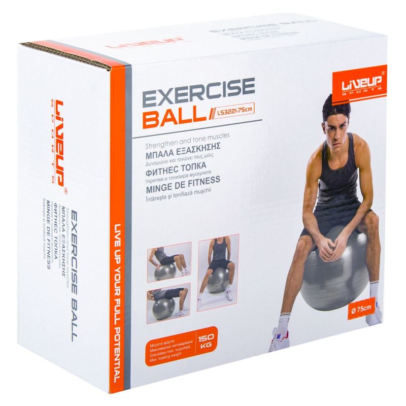 Масажна топка в сив цвят за фитнес, пилатес и гимнастика - 75 см.
