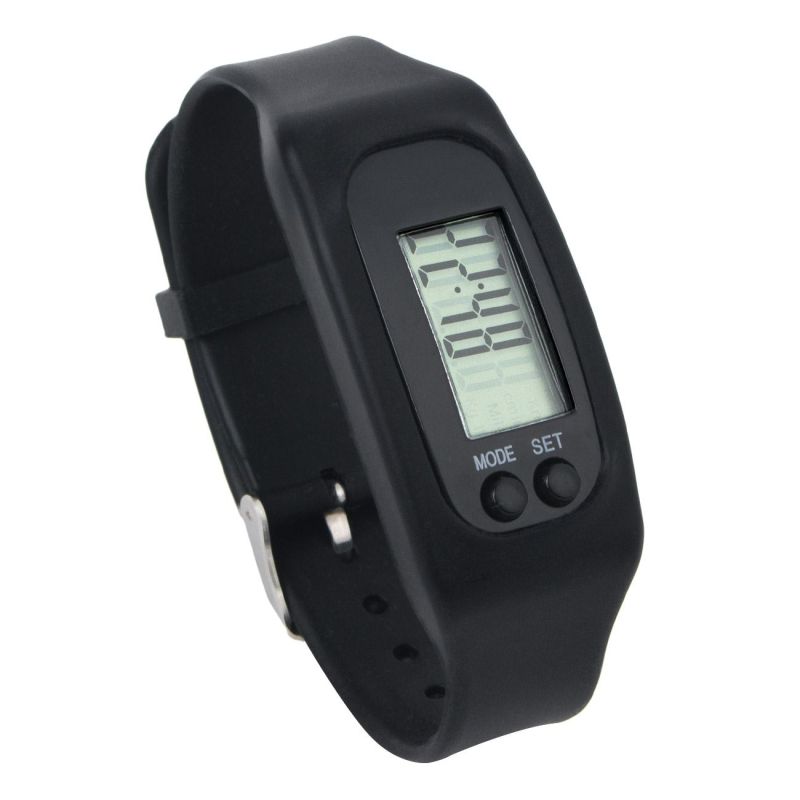 Фитнес часовник с 5-цифров LCD дисплей, 2 бутона за работа и настройки, които могат да се нулират.