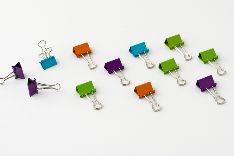 Опаковката съдържа 12 метални щипки в различен цвят с размери 25 мм.