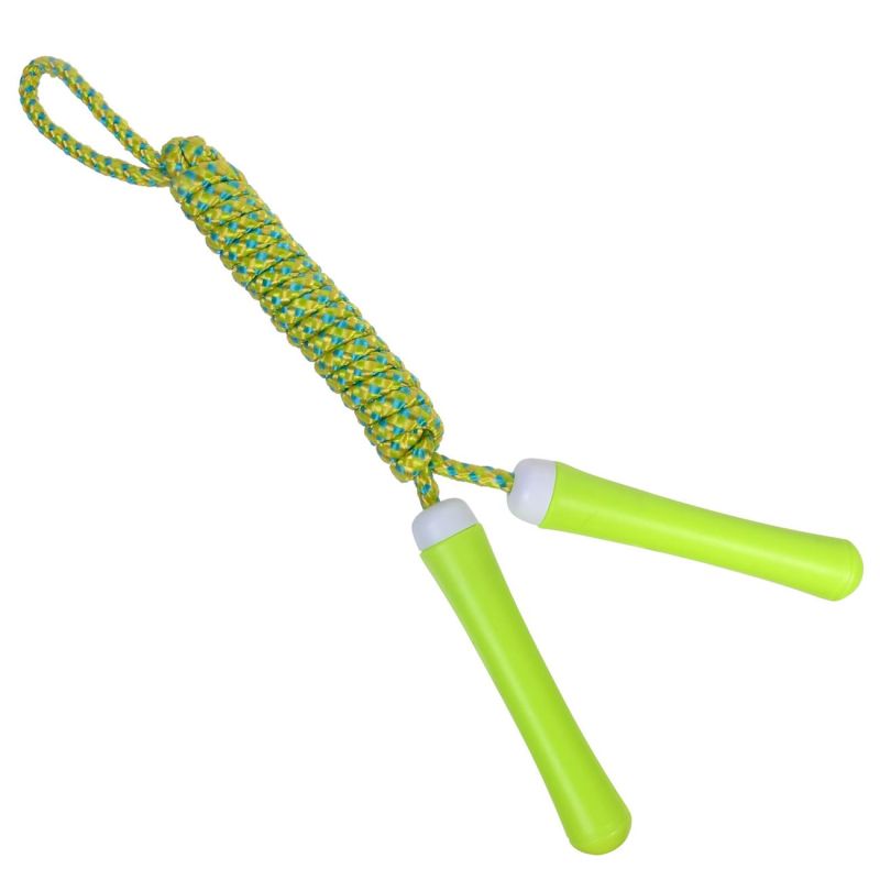 Детско въже за скачане в зелен цвят с ергономични противоплъзгащи пластмасови дръжки.