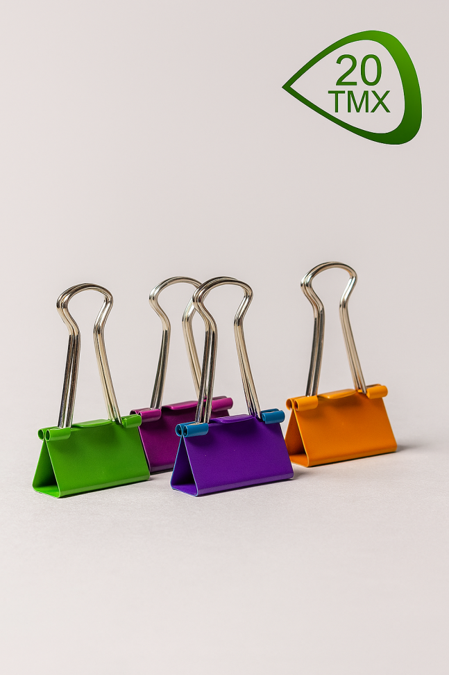 Опаковката съдържа 20 метални щипки в различен цвят с размери 19 мм.