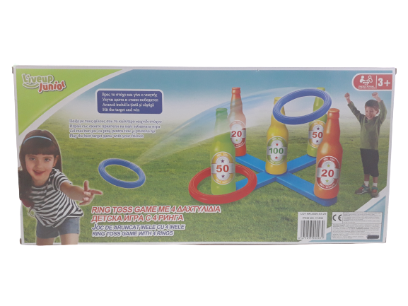 Детска занимателна игра с разноцветни бутилки и рингове, изработени от качествена и безвредна пластмаса.