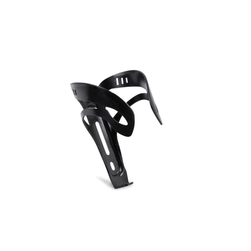 Поставка за бутилка за вода за велосипед, изработена от алуминий в черен цвят.