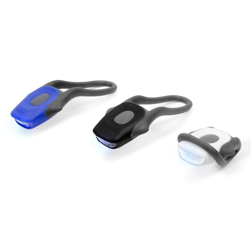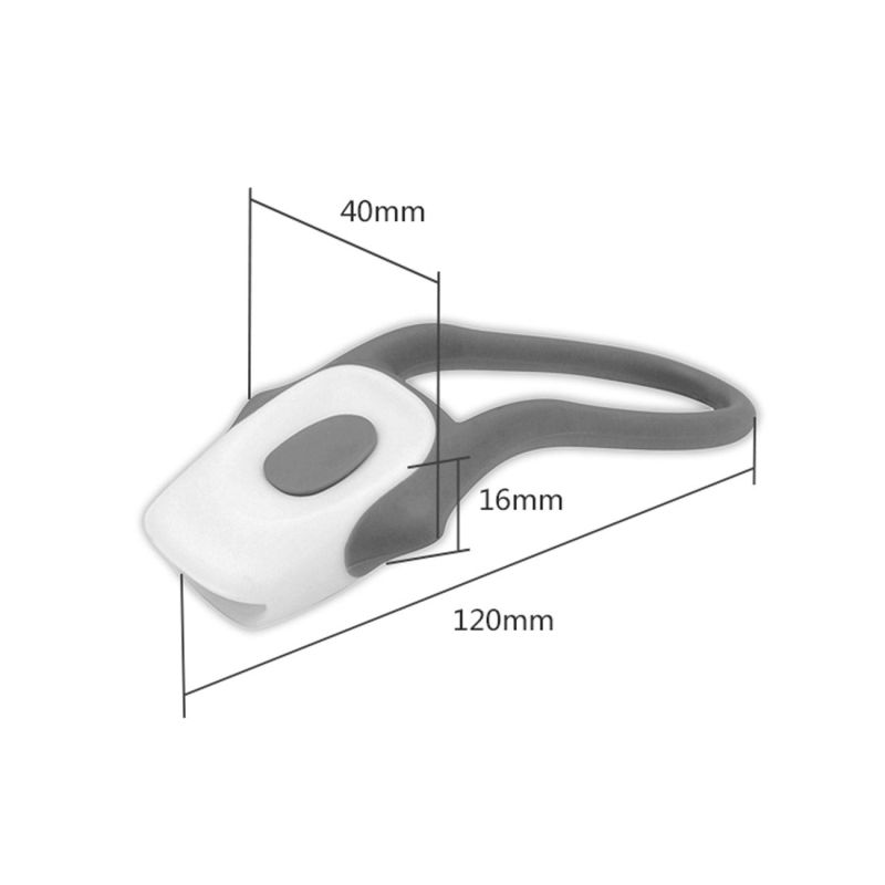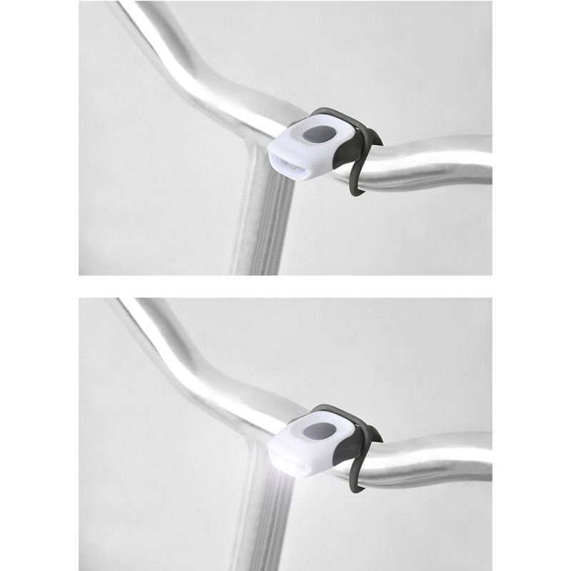 Фенерче за велосипед, изработено от пластмаса с гъвкав силиконов захващач за лесен монтаж на кормилото на велосипеда.