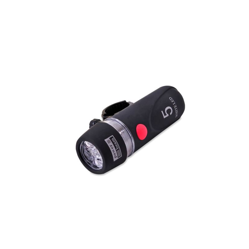 Предно фенерче за велосипед, изработено от качествена и здрава пластмаса в черен цвят с клипс за лесен монтаж на кормилото на велосипеда.