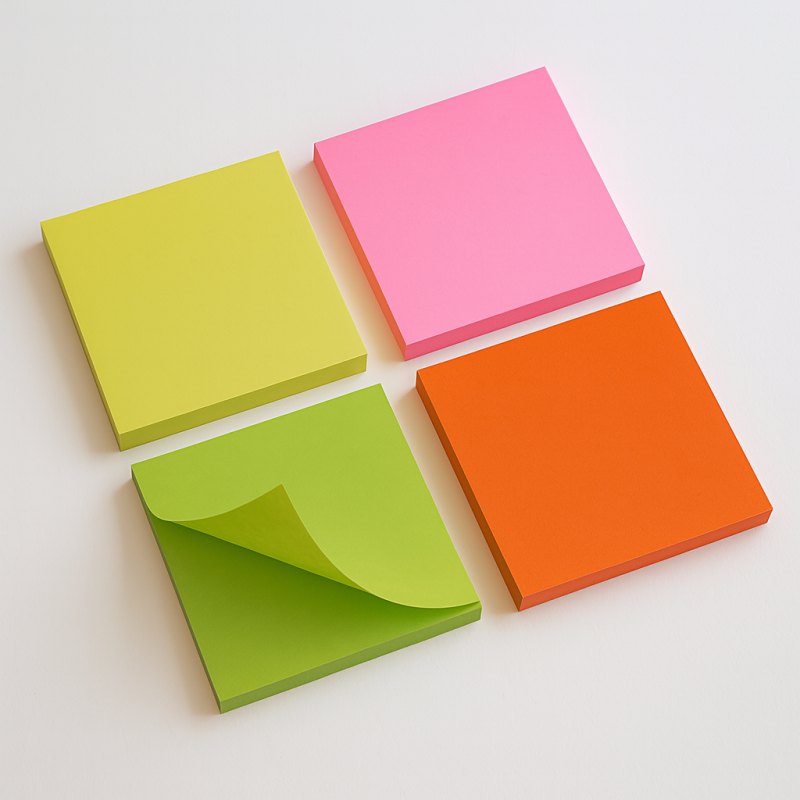 Комплект самозалепващи се листчета за бележки в различни цветове.