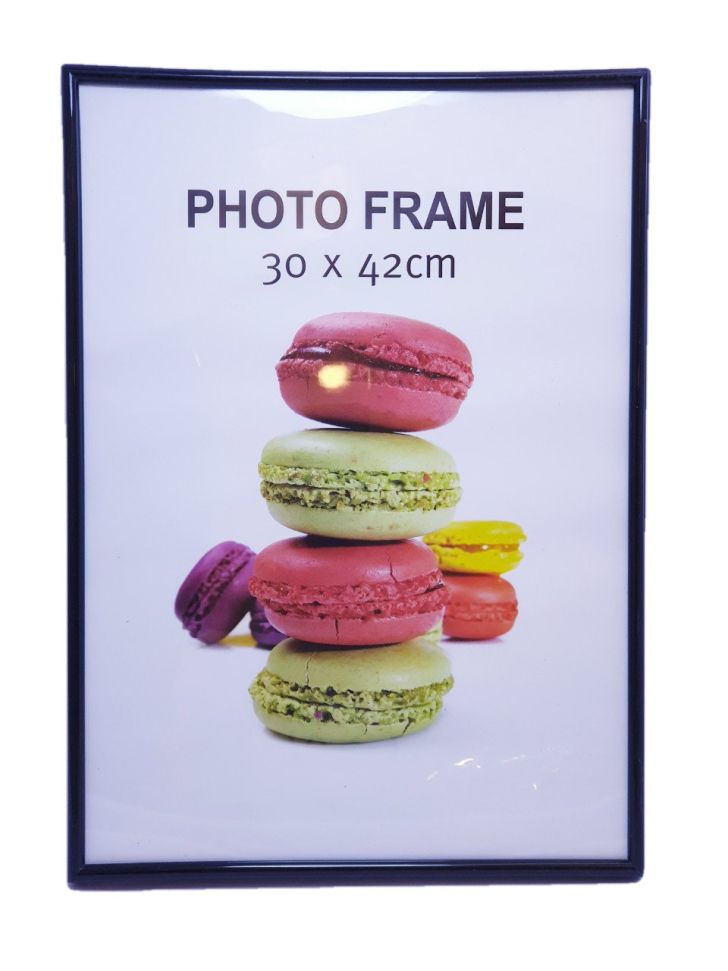 Класическа рамка за снимка, изработена от олекотена пластмаса в черен цвят и стъкло.