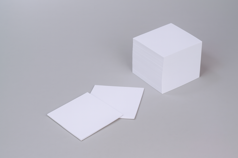 Икономичната опаковка съдържа 750 листчета с размери 8.5 х 8.5 см в бял цвят.