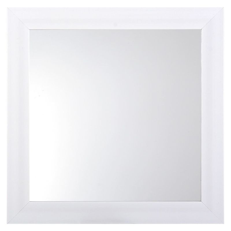Класическо стенно огледало с квадратна форма и бяла рамка.