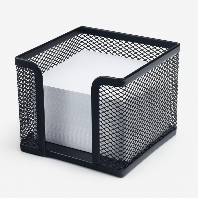 Черна метална поставка - тип мрежа за листчета за бележки, изработена от качествена и устойчива метална сплав за дълготрайна употреба.