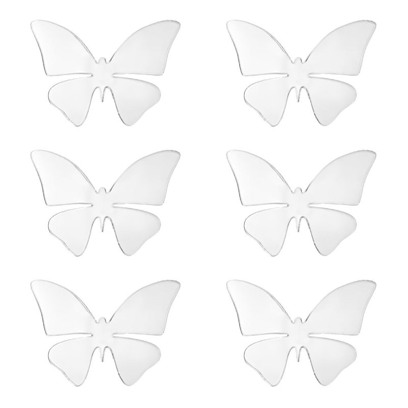 Комплект от 6 броя огледални стикери за стена от акрил във формата на пеперуди в сребрист цвят.