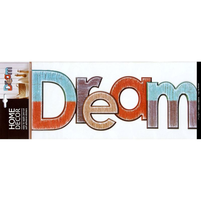 Декоративен стикер с разноцветен надпис Dream - практичен и лесен начин да декорираш интериора и да му придадеш нов и съвременен облик.
