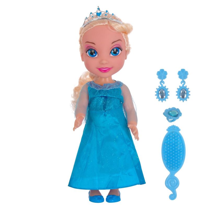 Реалистична кукла - принцеса Елза от Замръзналото кралство в комплект с аксесоари - четка за коса, пръстен и обеци.