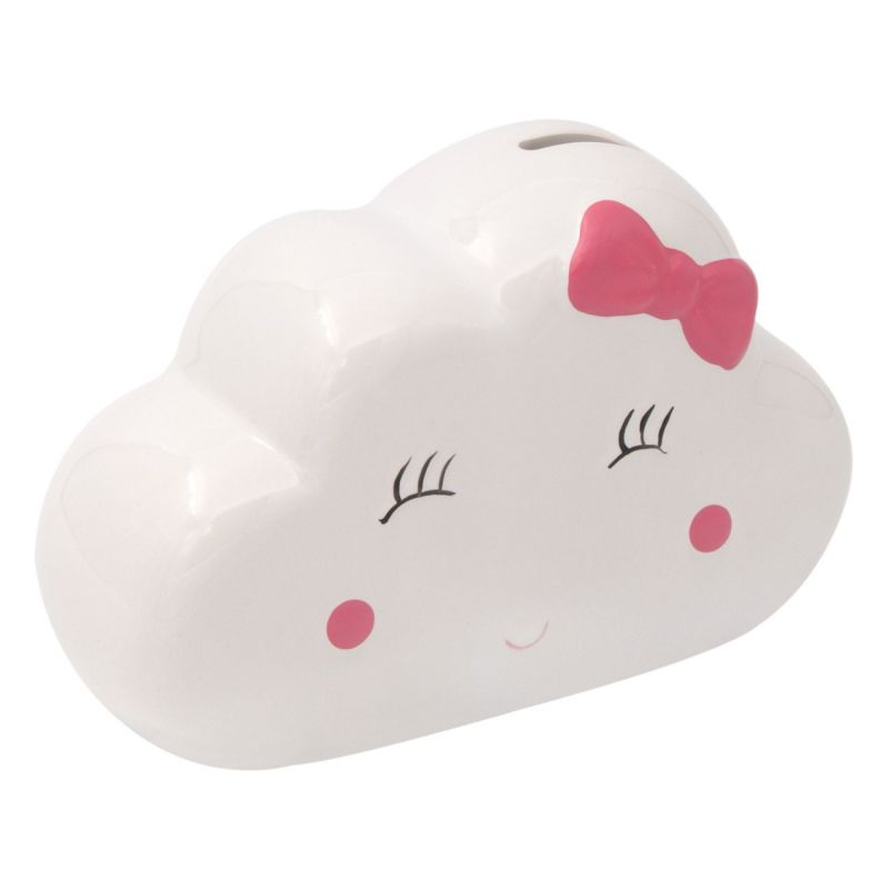 Детска касичка за монети във формата на усмихнато облаче с панделка.