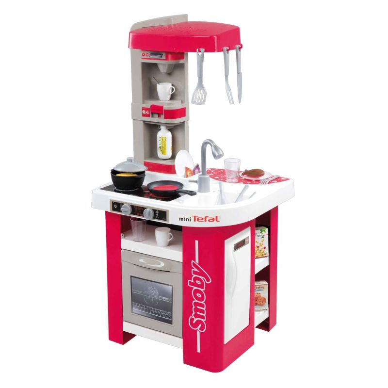 Детска кухня TEFAL със звук и светлини - фурна и мивка + 26 аксесоара - кафемашина, фризер, съдомиялна, котлони, тенджери, тигани, ножове, лъжици, вилици, шпатули, хранителни продукти и други.