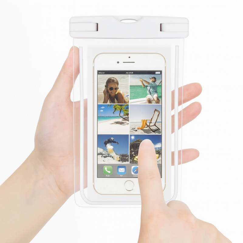 Водонепромокаем калъф за смартфони, изработен от висококачествен прозрачен материал, който позволява работа с поставения в него смартфон и правенето на подводни снимки.