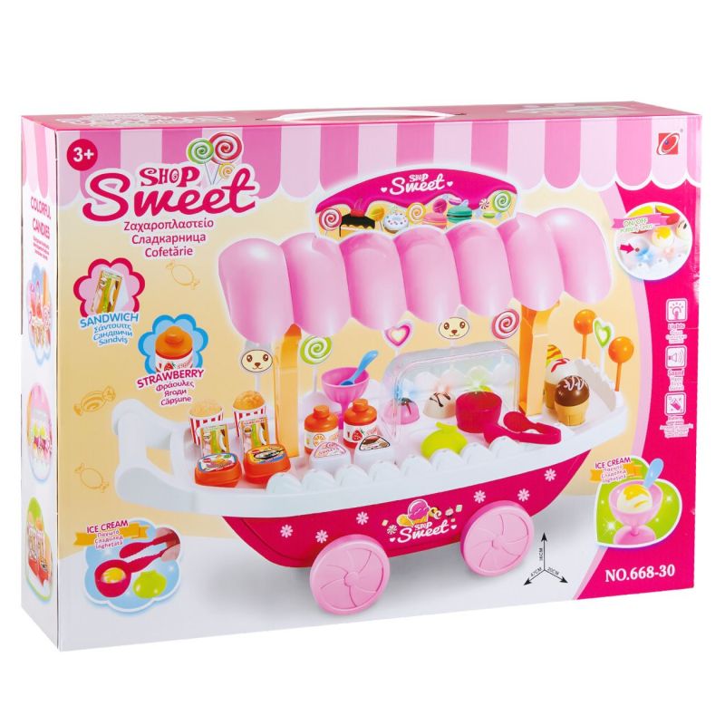 Детски комплект - сладкарски щанд за лакомства и сладолед със светлинни и звукови ефекти.