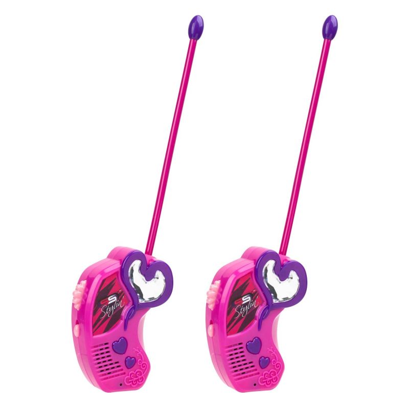 Чифт fashion уоки токи в цикламен цвят със заоблени форми и гъвкави антени проектирани за безопасност по време на игра.