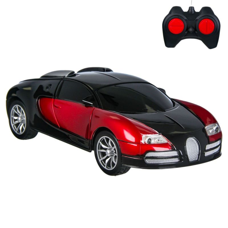 Детски спортен автомобил в черно и червено с дистанционно управление.