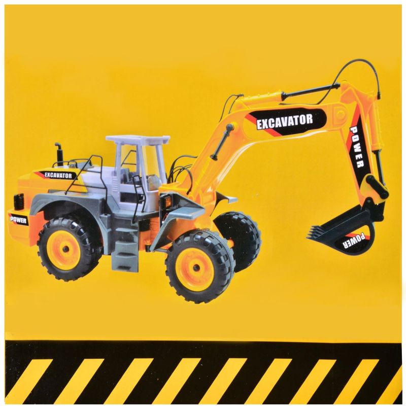 Детска играчка строителна машина - багер в жълт цвят с дистанционно управление.