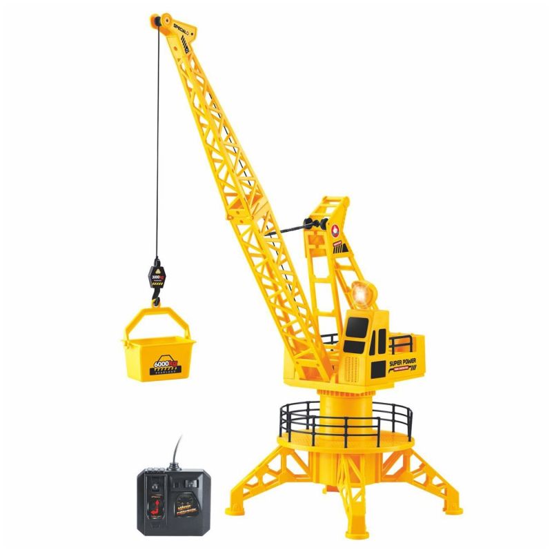 Детска играчка строителен кран със стойка в жълт цвят с дистанционно управление.