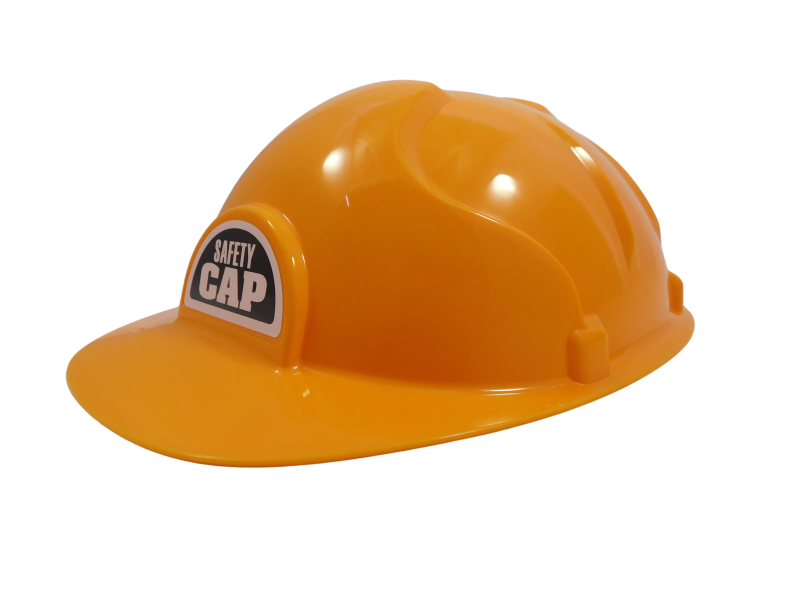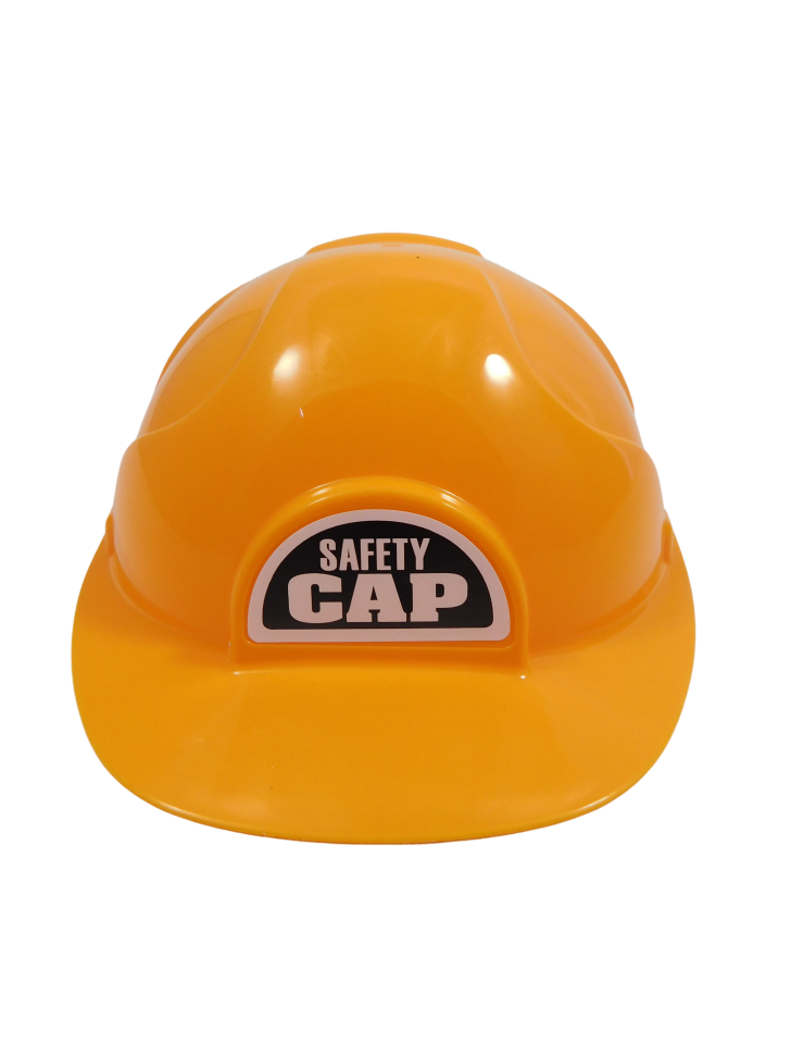 Детска строителна каска, изработена от здрава и устойчива пластмаса в светло оранжев цвят.