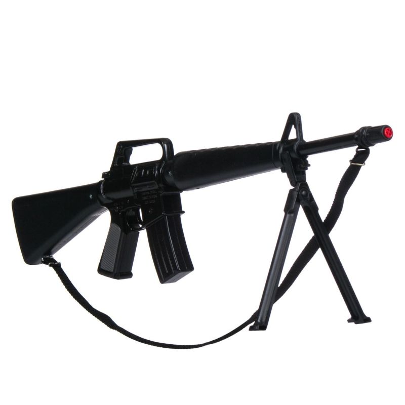 Реалистичен детски автомат с капси тип картечница, изработен от качествена пластмаса в черен цвят с удобна каишка за носене на рамо.