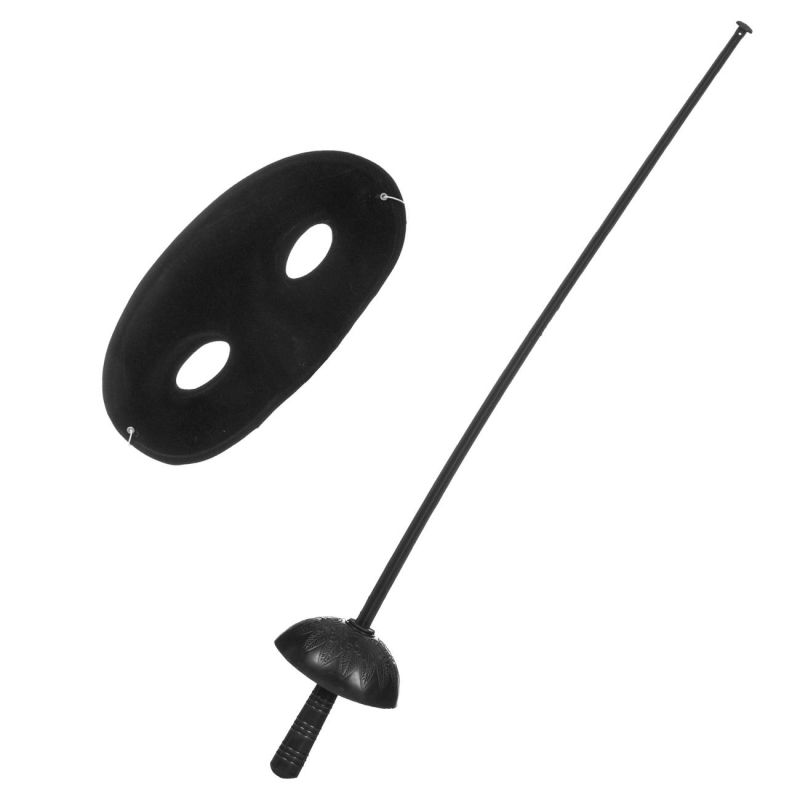 Детски комплект Зоро, включващ сабя и маска тип домино, изработени от олекотена и устойчива пластмаса.