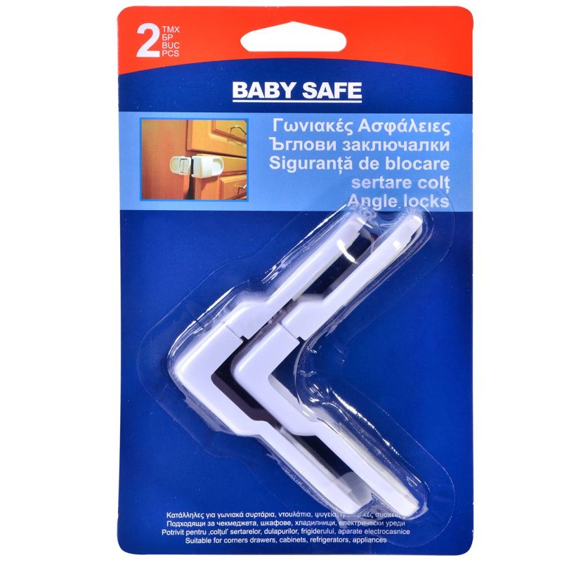 Комплект от 2 броя ъглови заключалки за обезопасяване на дървени шкафчета, врата на хладилник, микровълнова фурна, тоалетен капак и други места в дома.