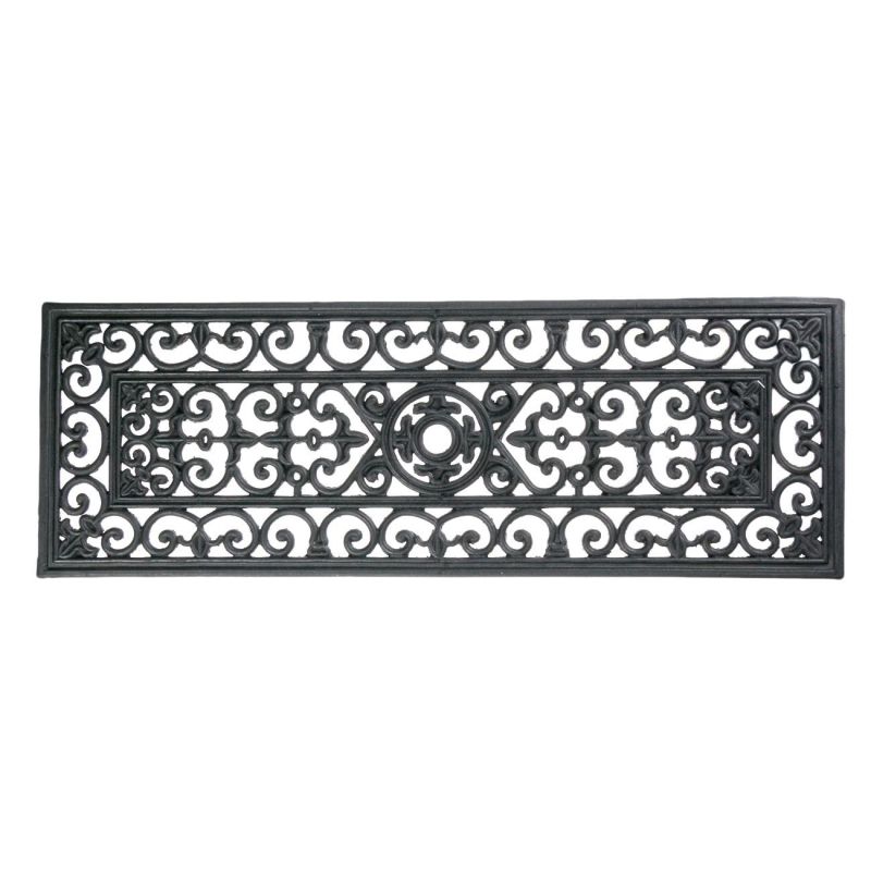Входна изтривалка в черен цвят с релефни орнаменти, изработена висококачествен каучук.