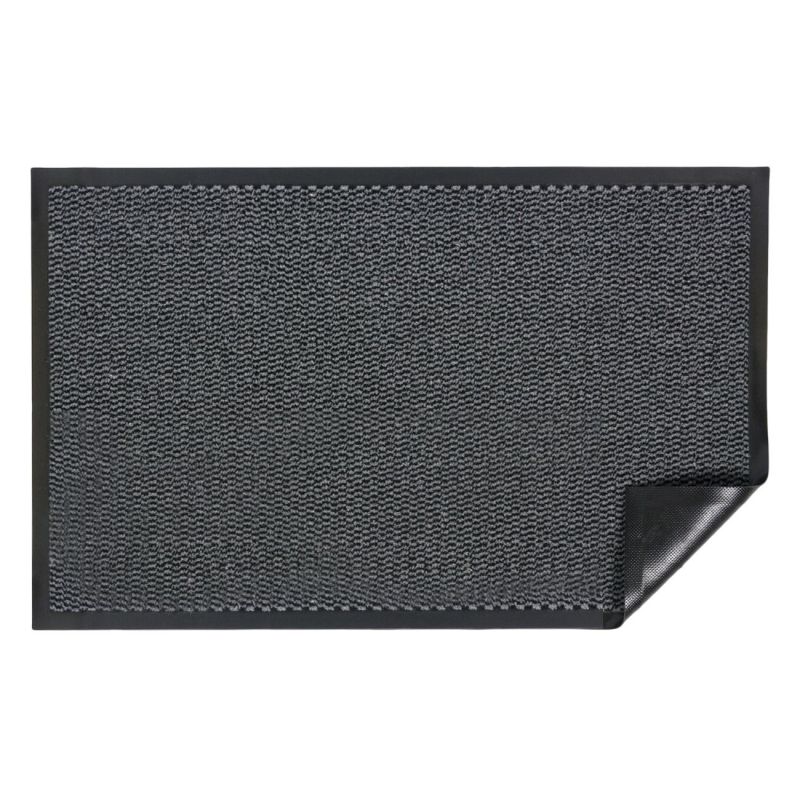 Входна изтривалка в цвят графит с релефна повърхност, изработена висококачествен мокет и каучук.