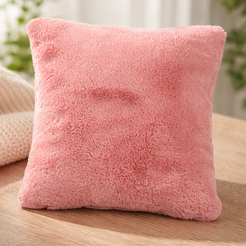 Възглавничката има мека и пухкава материя, имитираща вълна, приятен цвят, универсален размер и широко приложение.