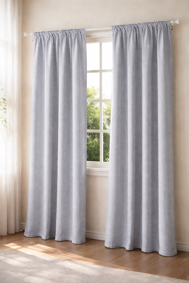 Висококачествена елегантна завеса, изработена от полиестер в сребристо сив цвят, която осигурява уют и комфорт.