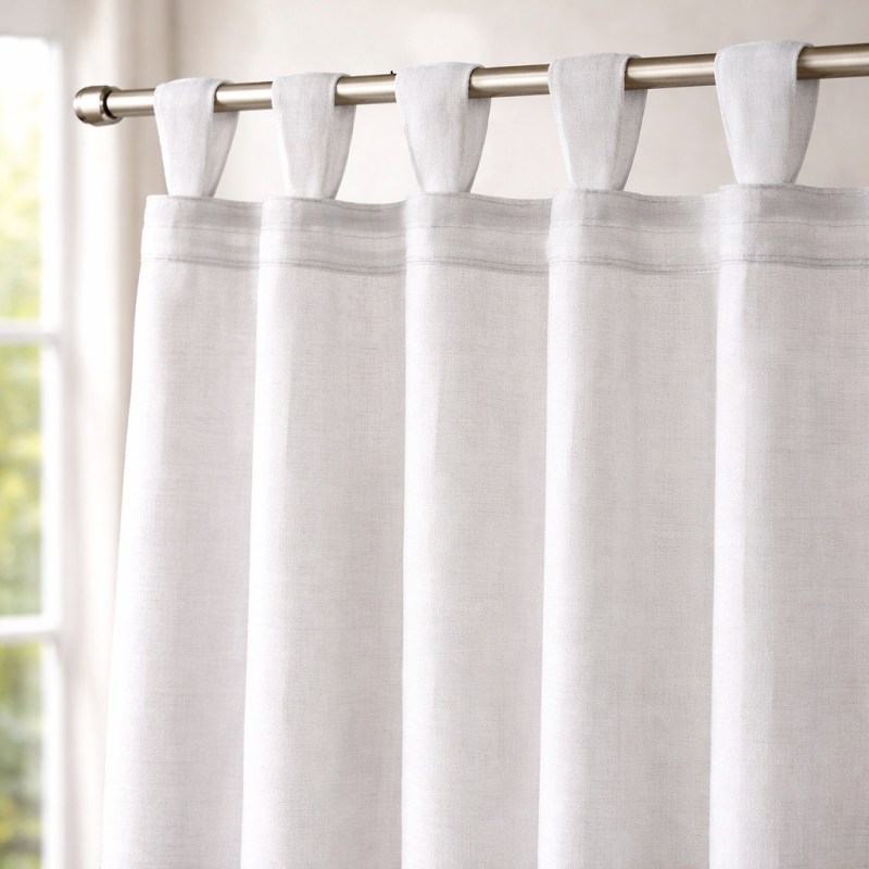Завесата е с практични куки с дължина 10 см., позволяващи окачване както на тръбен корниз, така и на PVC или метална релса.