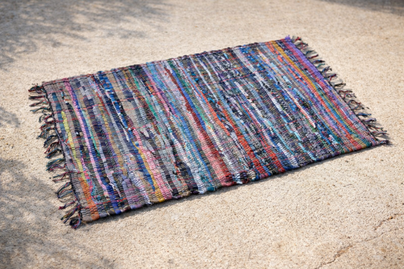 Постелка за под, изработена от памук в разноцветен меланж.