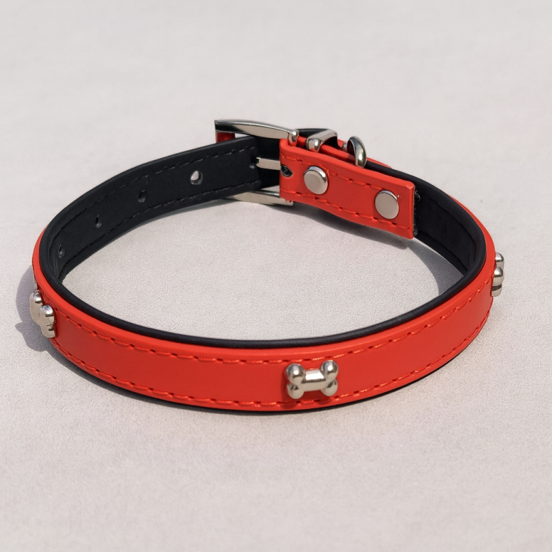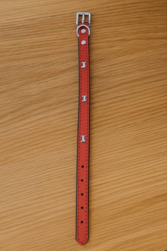 Кожен нашийник за куче - червен