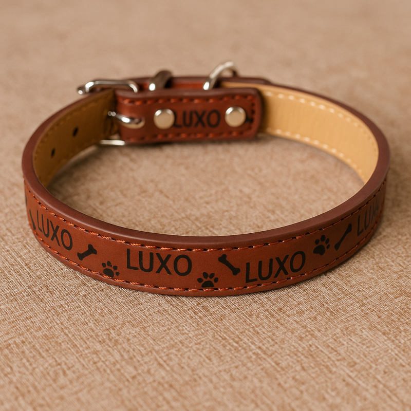 Кожен нашийник за куче с катарама за закопчаване.