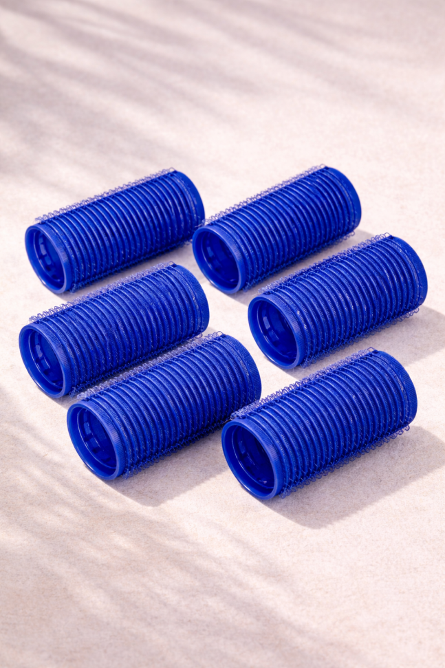 Комплект от 6 броя самозалепващи се ролки среден размер в син цвят.