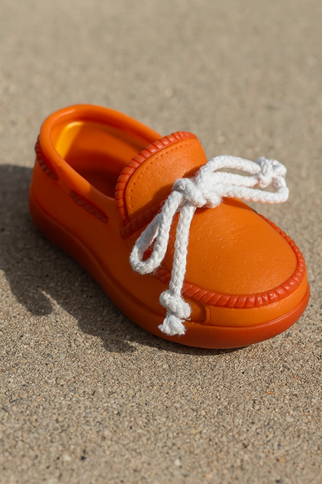Гумена играчка за дъвчене във формата на малка обувка.