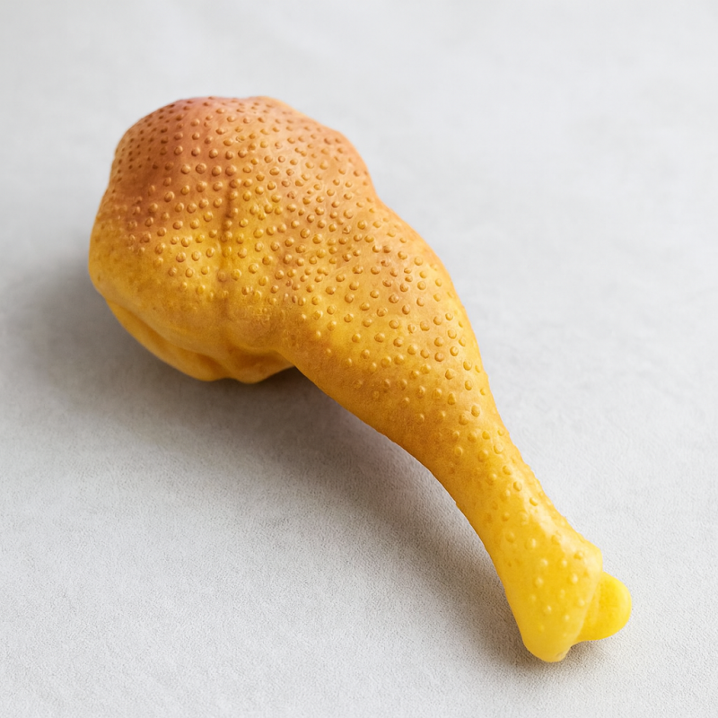 Гумена играчка, изглеждаща като истинско печено пилешко бутче за забавление на Вашето куче.