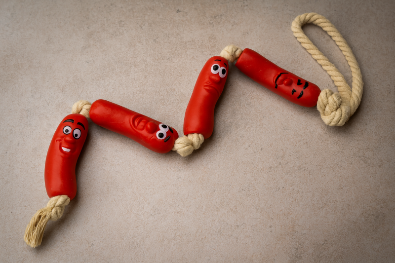 Играчка, изглеждаща като истински наденички за забавление на Вашето куче.