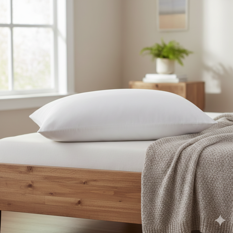 Бебешка възглавница за сън с необработени полиестерни влакна и калъф от чист полиестер в бял цвят.