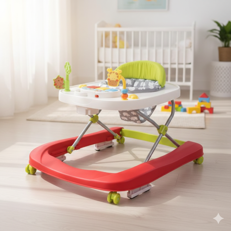 Има голяма основа с разглобяема рамка, за да помогне детето в първите му стъпки.