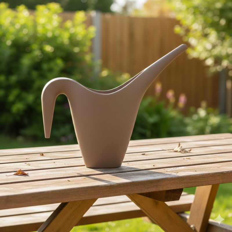 Функционална кана с ергономична дръжка и дълъг чучур за лесно поливане на цветята без подливане.