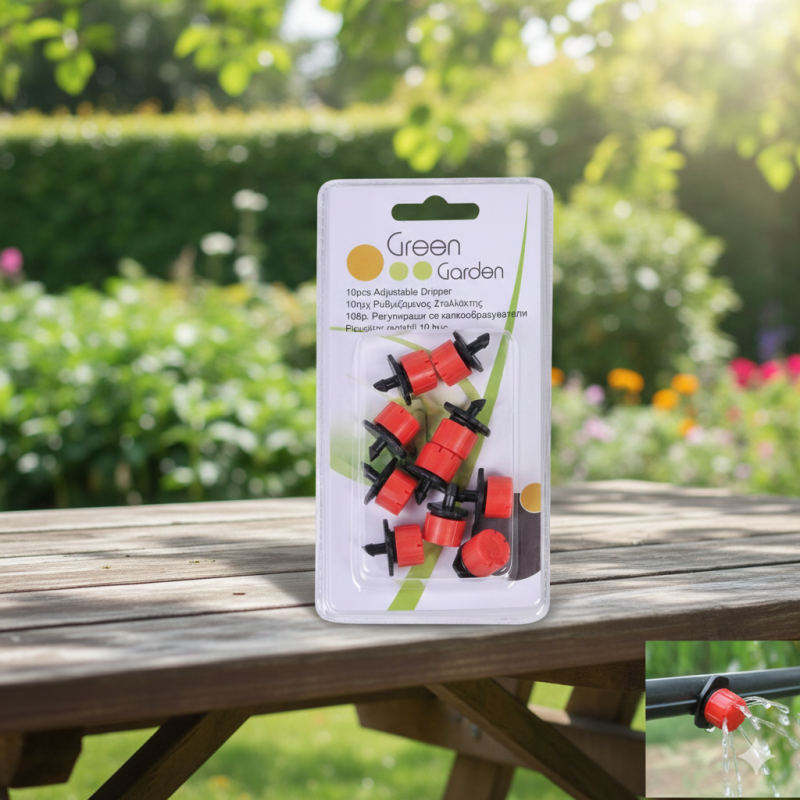 Комплект от 10 броя регулируеми капкообразуватели, изработени от пластмаса.