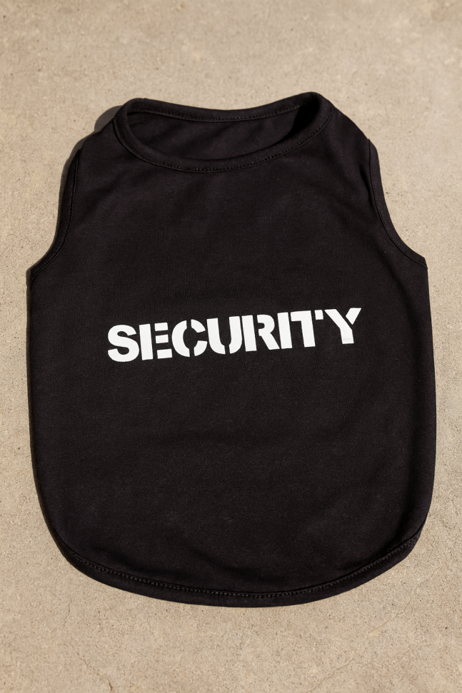 Блуза за куче без ръкави в черен цвят с надпис Security.