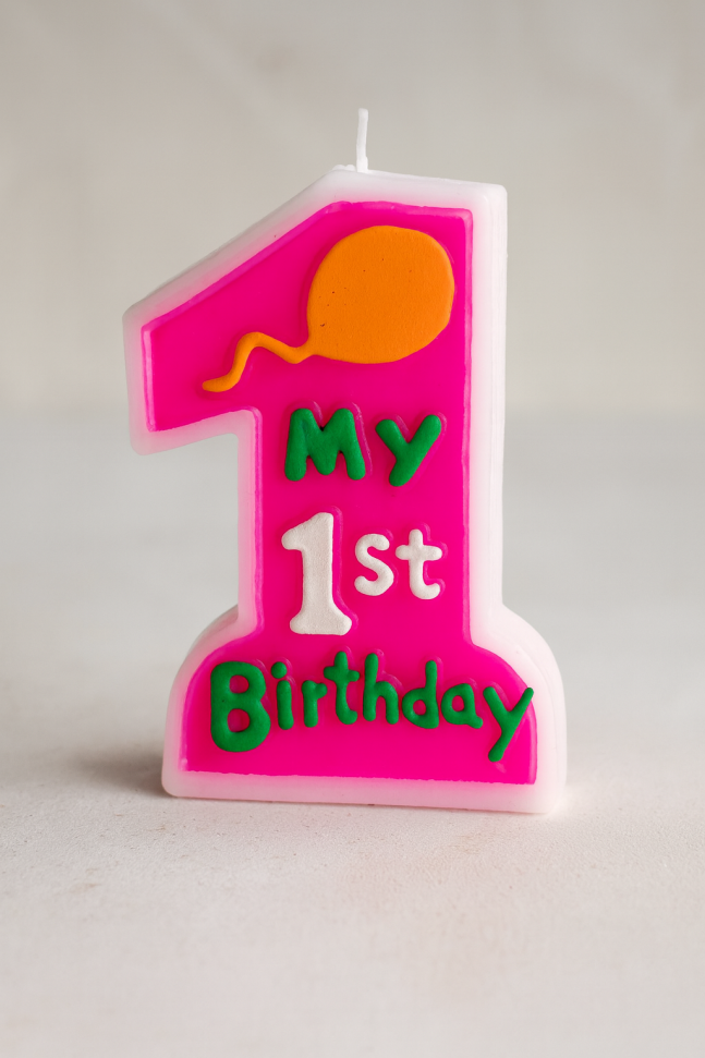Празнична свещ за торта във формата на цифрата 1 в цикламен цвят, която ще бъде красиво допълнение към всяко парти за първи рожден ден на дете.