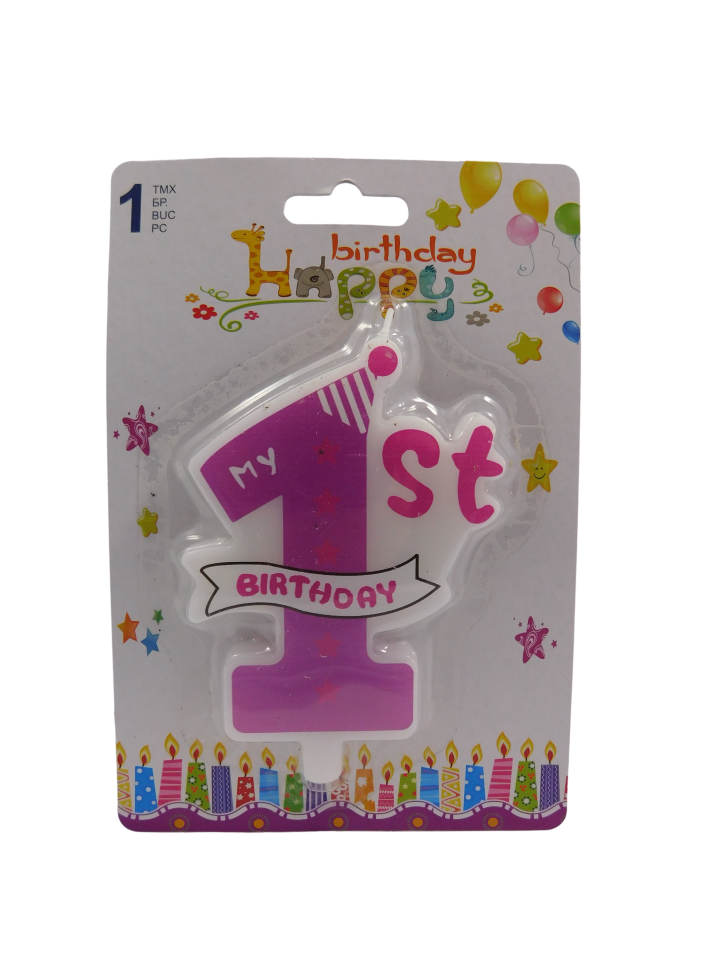 Празнична свещ за торта във формата на цифрата 1 в лилав цвят, която ще бъде колоритно допълнение към всяко парти за първи рожден ден на дете.