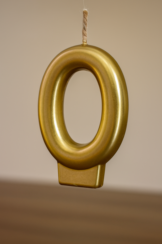 Свещ за торта - цифра 0 - златиста
